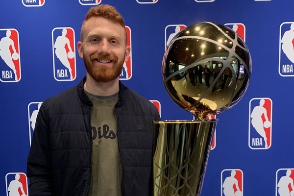 Pictured above: Alan with the Larry O’Brien Trophy at the NBA Headquarters in NYC; Alan and his wife, Angelica, who is also a designer and architect; a Louis Vuitton X Wilson collaboration basketball that Alan helped to design; The Wilson Shift tennis racquet, the newest Wilson tennis racquet that Alan helped to design; The Wilson basketball pump and backpack (with concept sketches) Alan designed for the initial partnership between Wilson and the NBA in collaboration with Kith.
